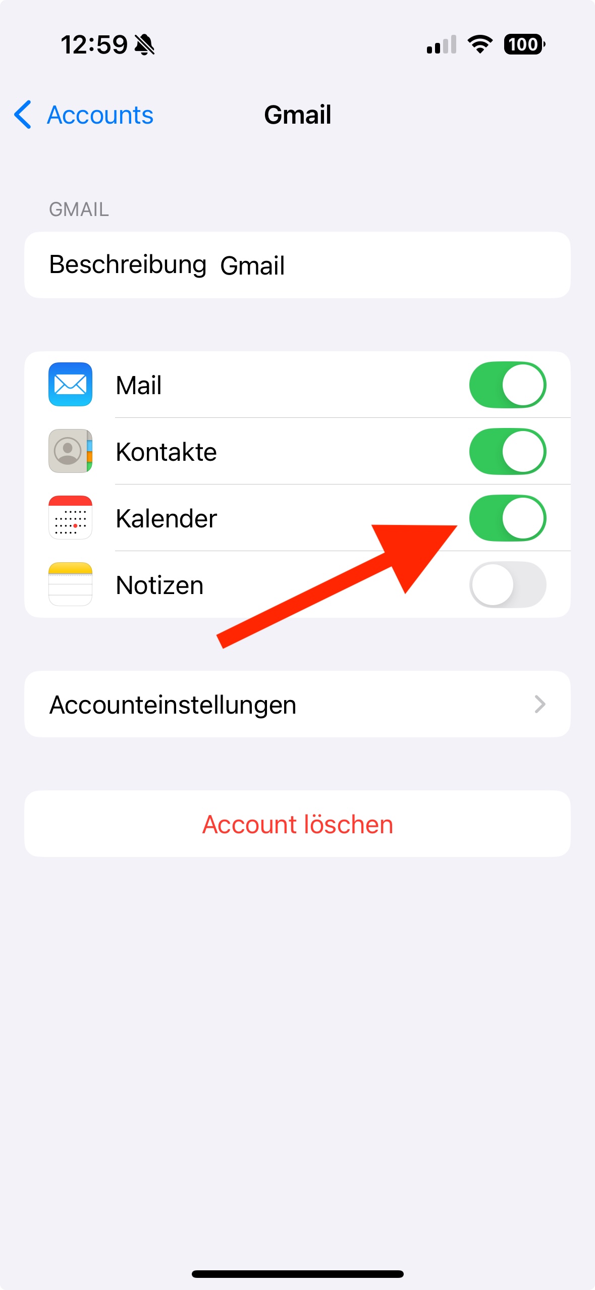Sollte der Export in den Google Kalender auf iOS nicht mehr funktionieren, obwohl er schon einmal funktioniert hat, dann kannst du versuchen, ob es hilft, den Sync zwischen iOS und Google in der iOS-Einstellungen App neu zu starten. Das geht bei: