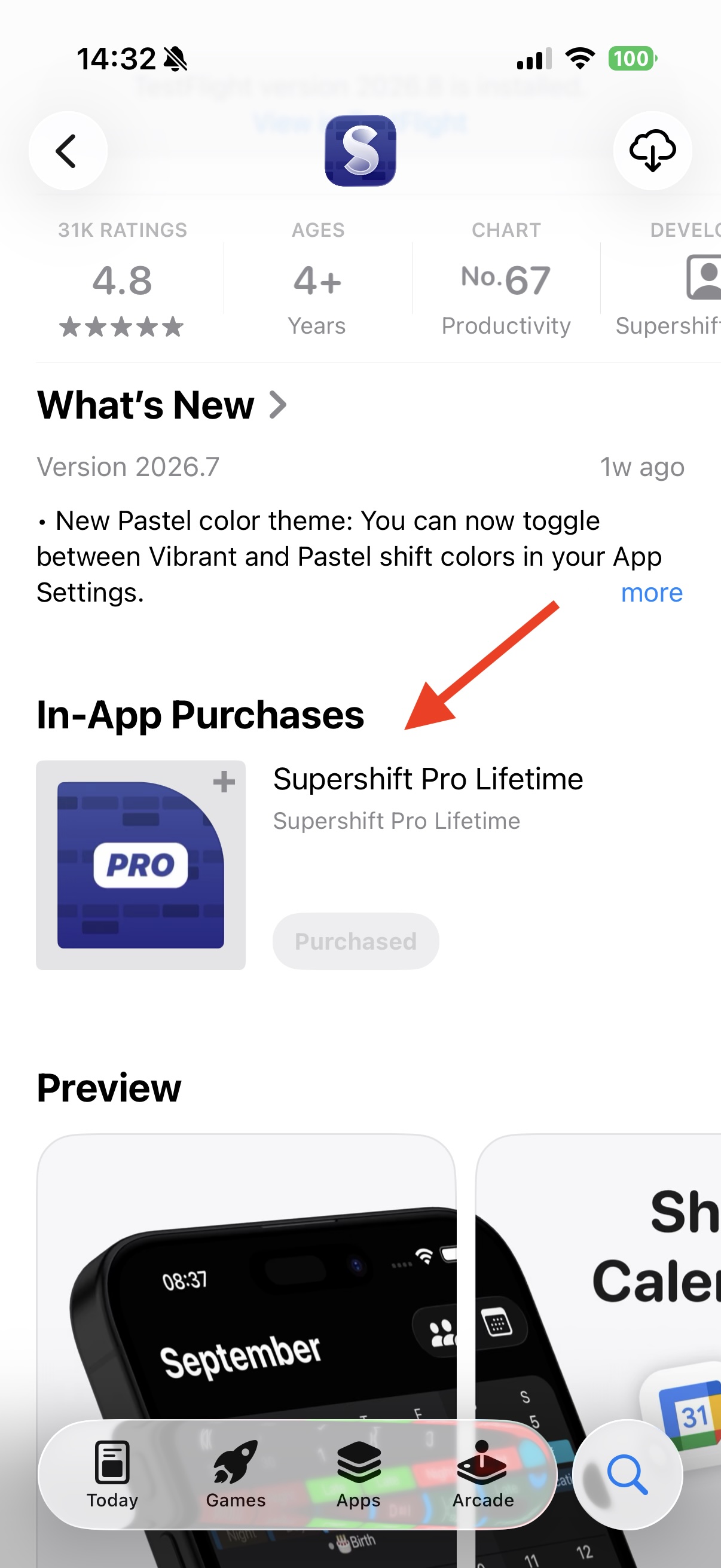 To upgrade your Supershift Pro subscription to a lifetime plan, you must first cancel your current subscription. Once your subscription expires, you can purchase the lifetime plan directly within the app.